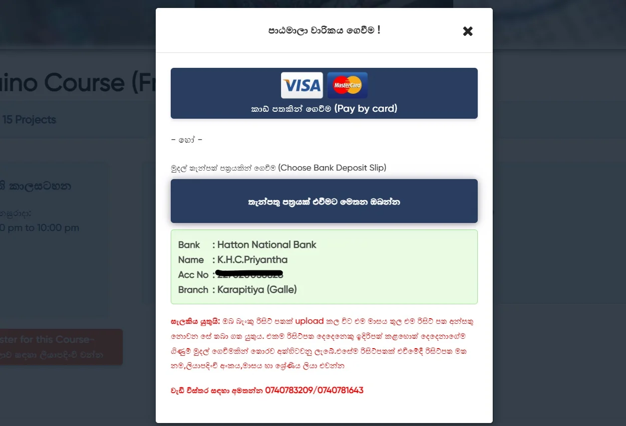 ◉ Course and tuition charges by credit / debit cards and Bank Slip